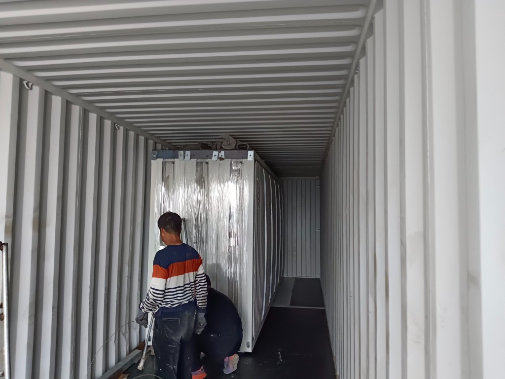 El módulo llega plegado al 35% en un contenedor estándar. Compacto, protegido y pre-armado.